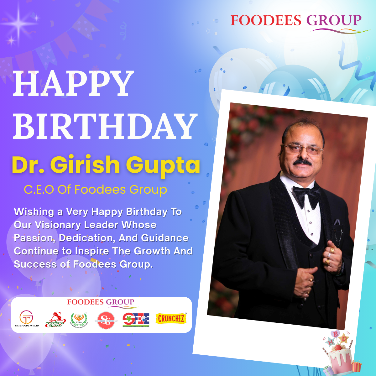 #HappyBirthdayDrGirishGupta #FoodeesGroup #VisionaryLeader #CEO #LeadershipExcellence #BusinessInspiration #FoodIndustryIndia #Entrepreneurship #CorporateLeadership #SuccessJourney