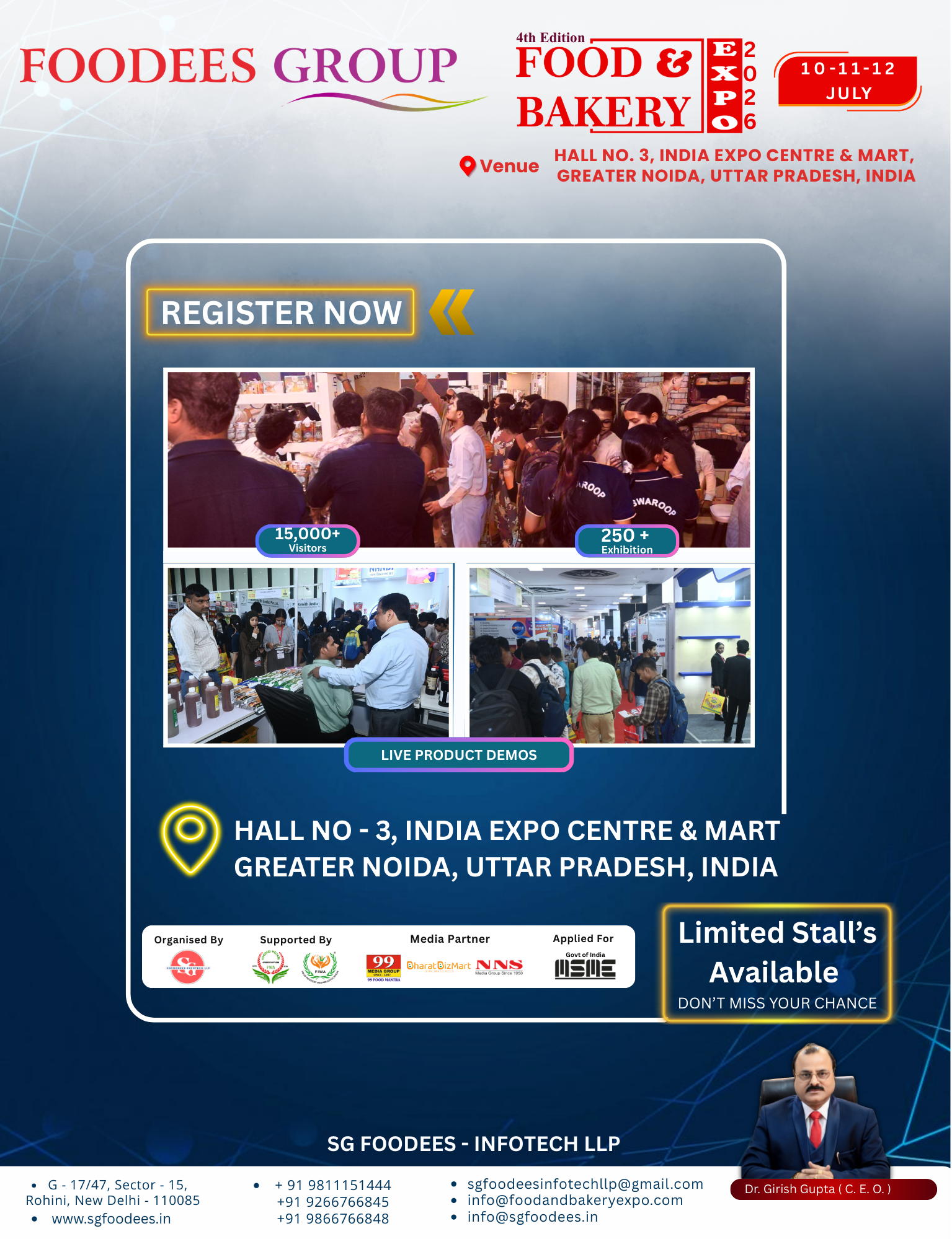 Register now or book your stall today to secure your presence at one of India’s fastest-growing food and bakery industry exhibitions.