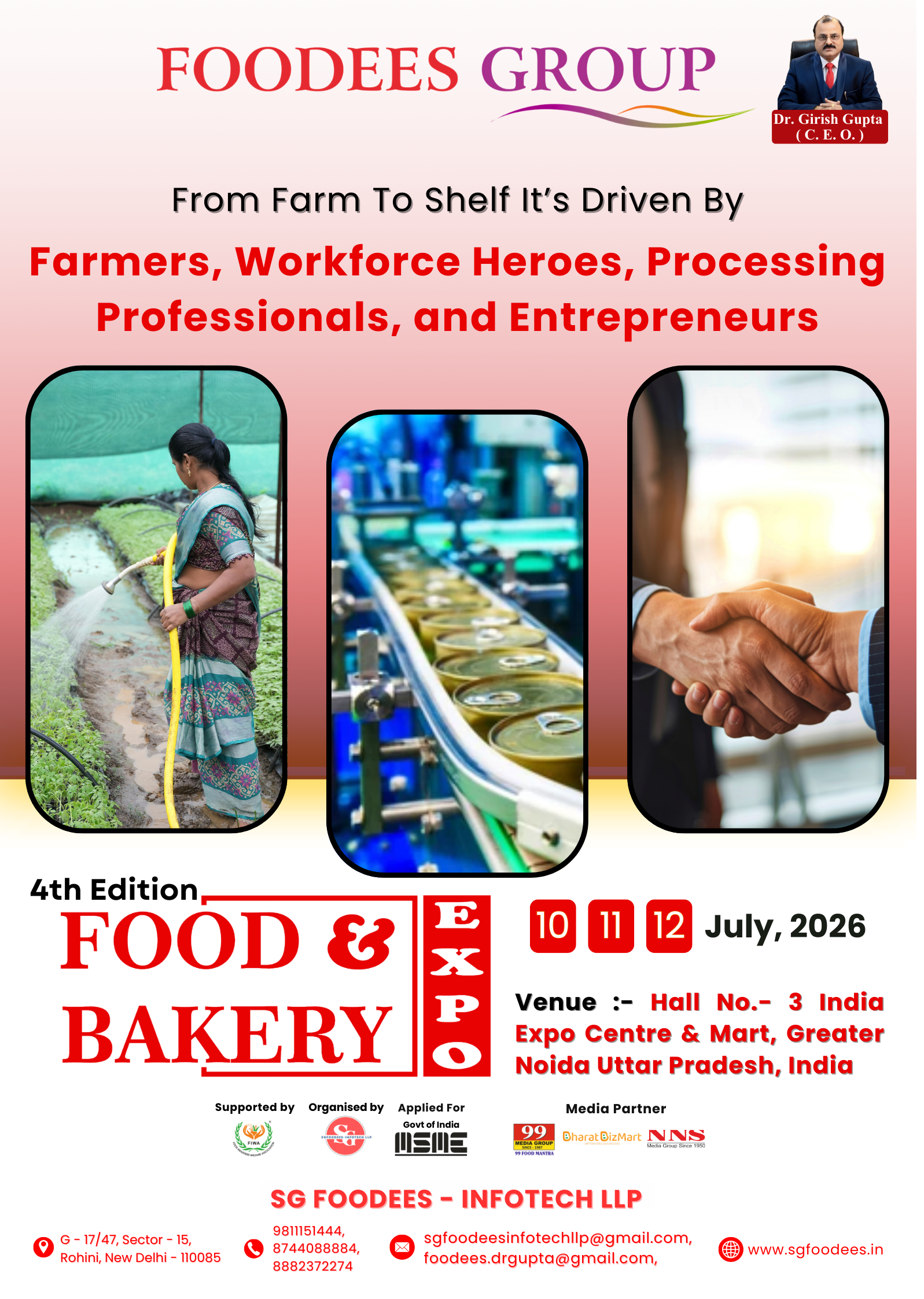 The 4th Edition of Food & Bakery Expo 2026, organized by Foodees Group, is not just an exhibition โ itโs a powerful platform connecting farmers, food processors, manufacturers, entrepreneurs, distributors, and industry leaders under one roof.